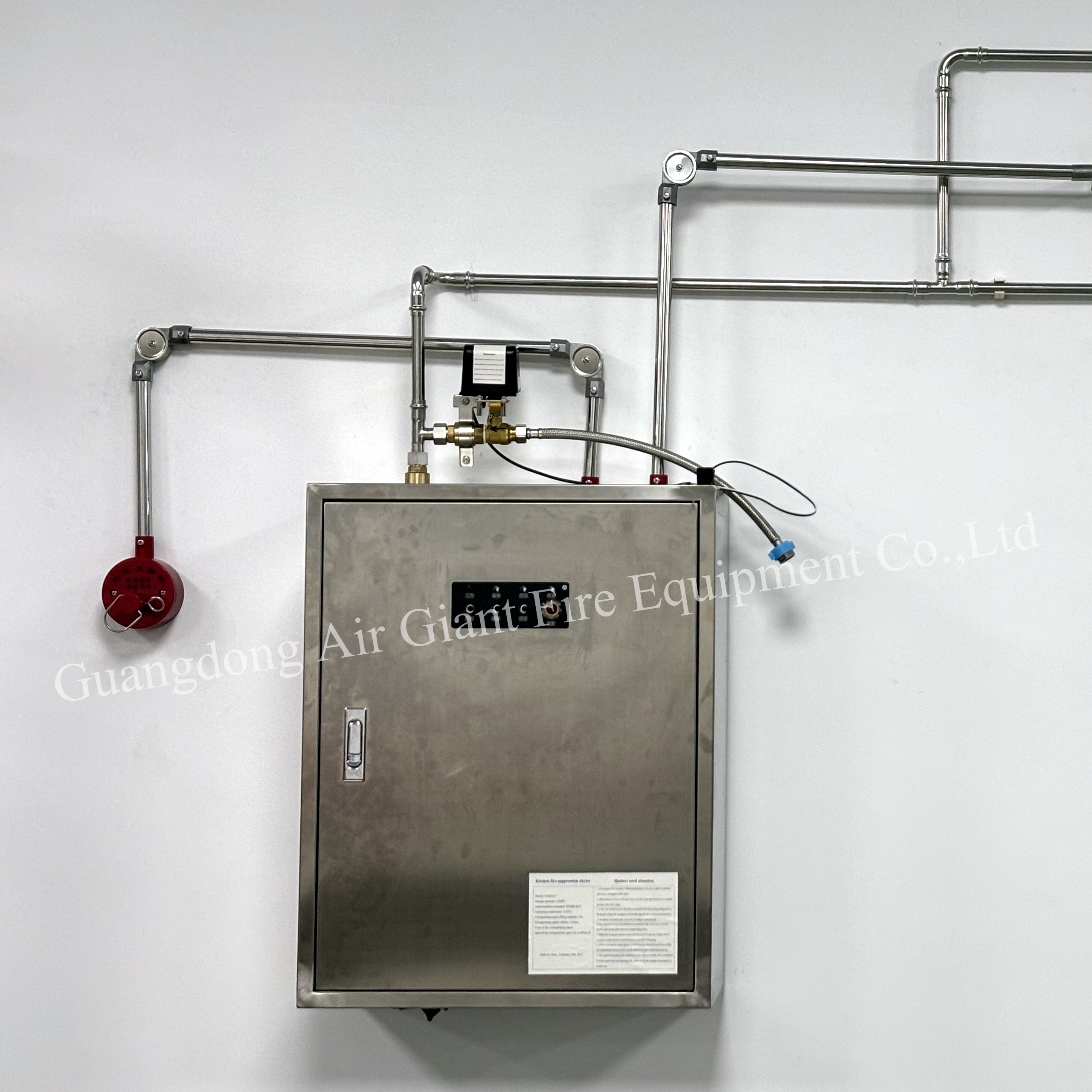 Специальное огнетушащее вещество для кулинарного масла представляет собой специально разработанную смесь воды с низким pH и органических солей. Оно обеспечивает быстрое подавление пожара за счет химической реакции с кулинарным маслом, образуя негорючий слой пены, тем самым перекрывая доступ кислорода. Это огнетушащее вещество характеризуется нетоксичностью, отсутствием запаха, экологичностью и простотой очистки, что соответствует высоким стандартам защиты окружающей среды и безопасности, требуемым на современных кухнях.Компоненты системы пожаротушения кухонь