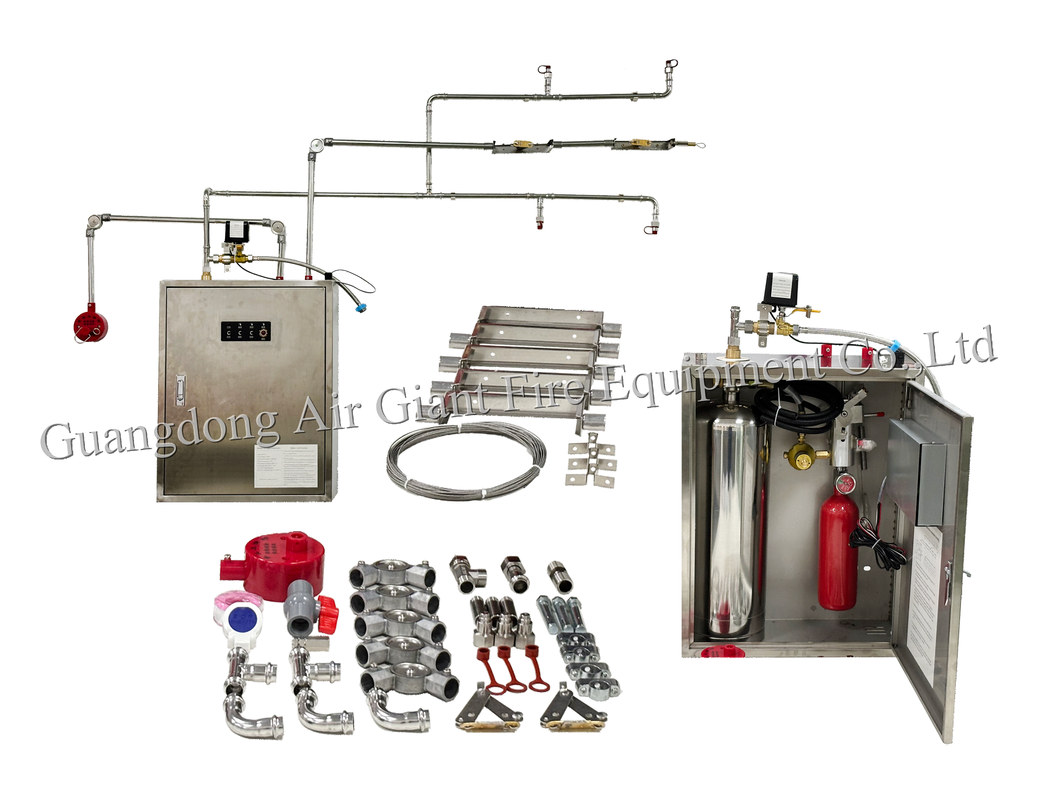 Для лучшего реагирования на распространенные пожары на маслах для приготовления пищи на кухнях система пожаротушения оснащена специальным огнетушителем, предназначенным для масел для приготовления пищи.без запаха, не загрязняет окружающую среду и легко очищается, обеспечивая безопасность, а также учитывая очистку после использования.Он может быстро тушить пожары, вызванные легковоспламеняющимися материалами, такими как жир, и эффективно предотвратить возникновение огня..